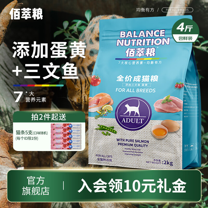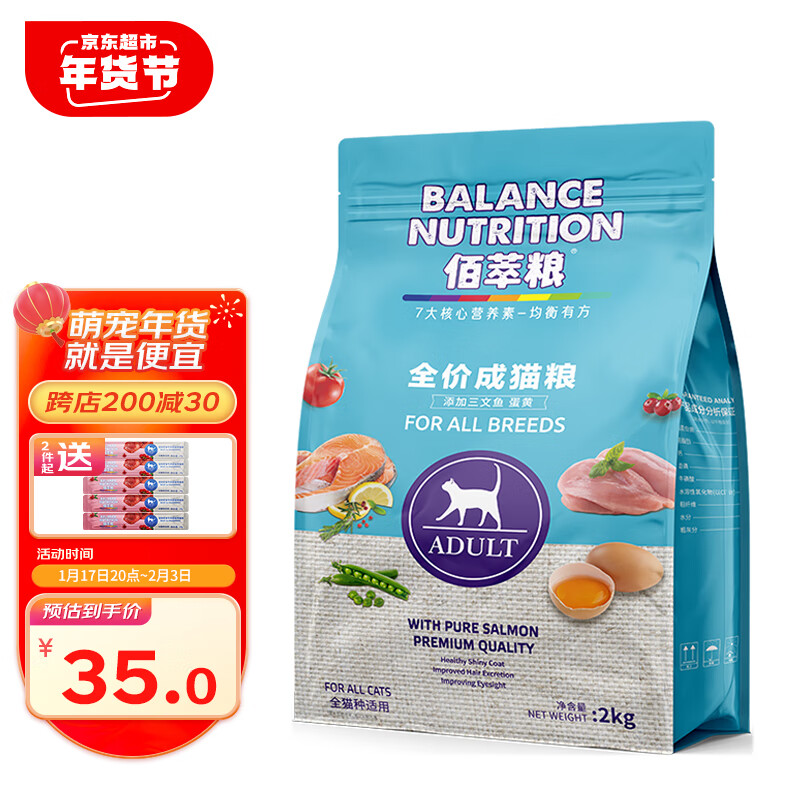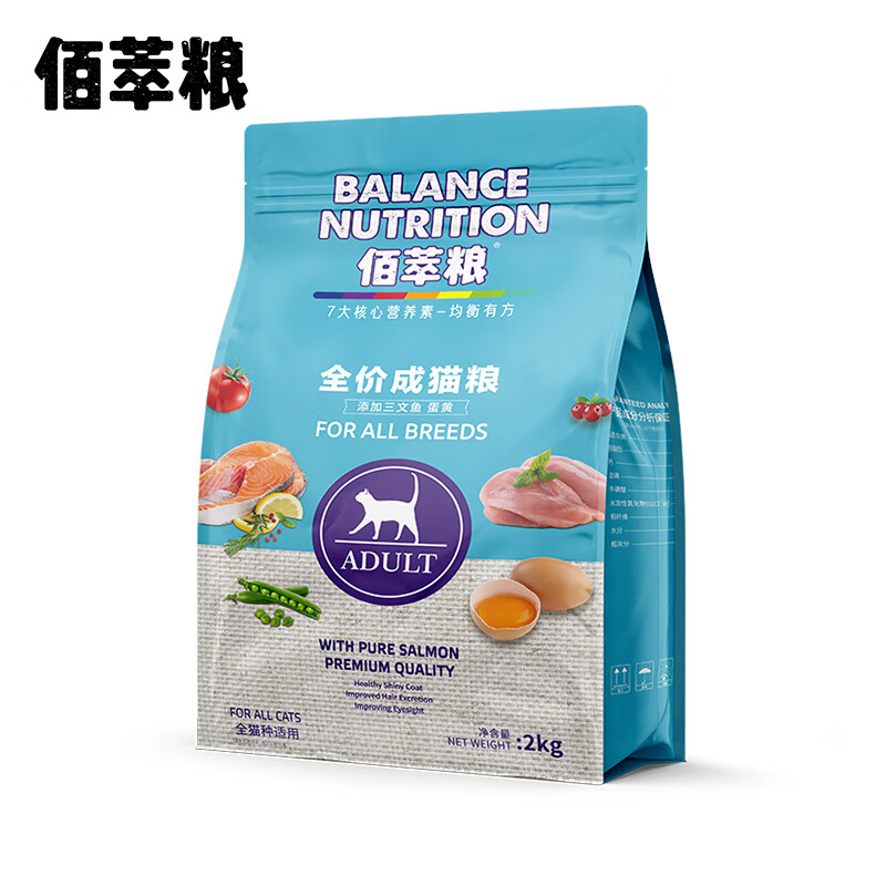 佰萃粮猫粮 蓝猫美短波斯猫咪通用三文鱼蛋黄猫干粮天然粮 成猫粮2kg