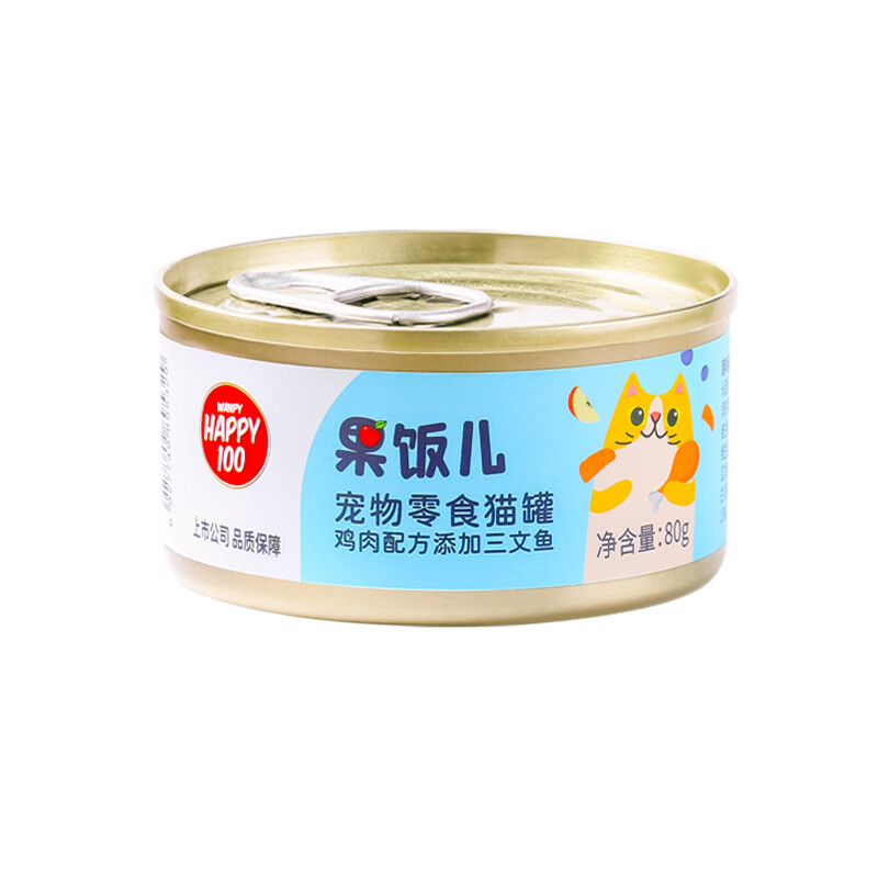 顽皮(Wanpy)鸡肉三文鱼猫罐头80g(汤汁型)猫咪零食宠物零食湿粮罐头 happy100果饭儿系列v1