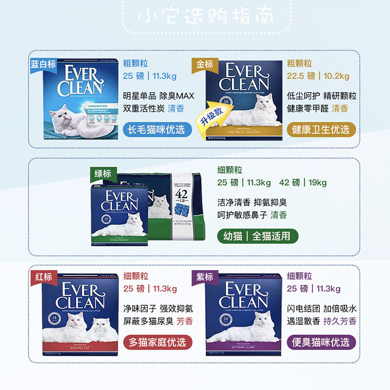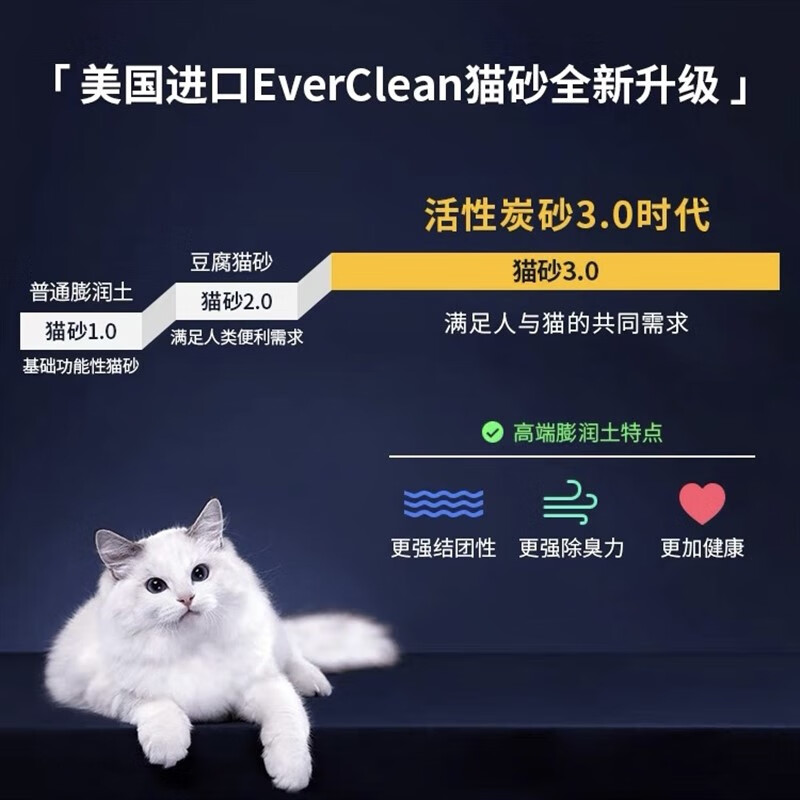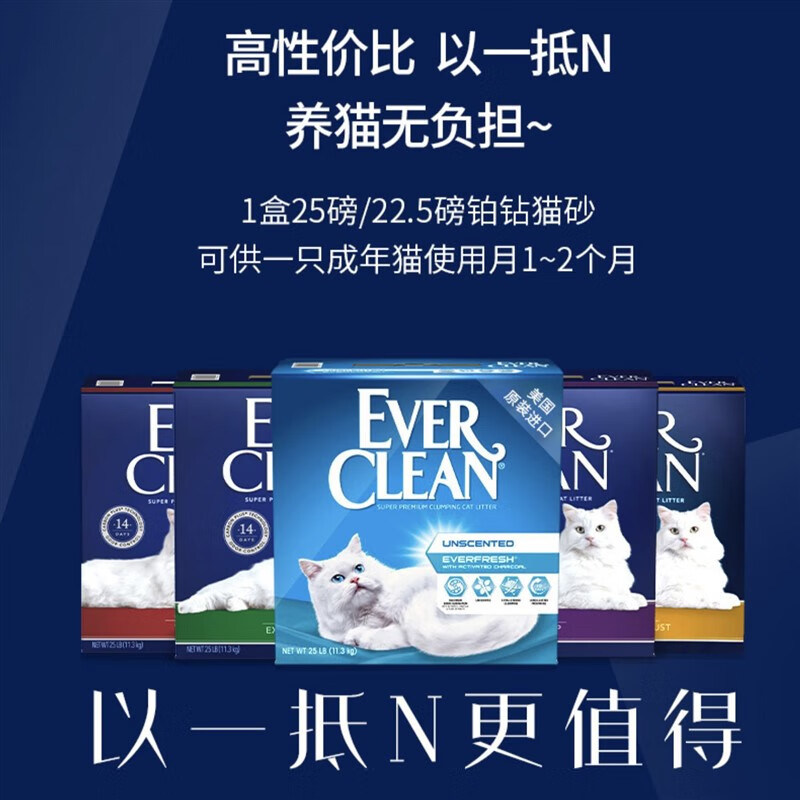 新宠之康美国进口铂钻EverClean25磅强结团除臭钠基膨润土高端活性炭猫砂 【金标-低尘|升级款】22.5磅
