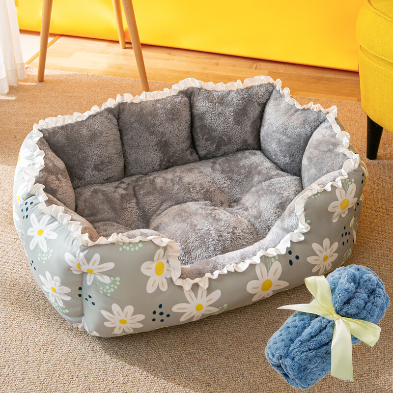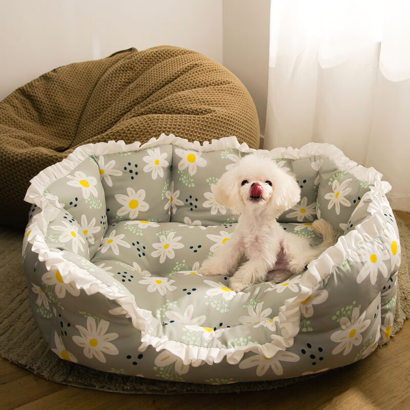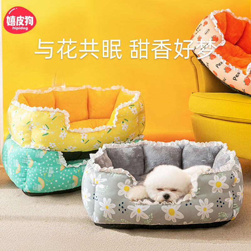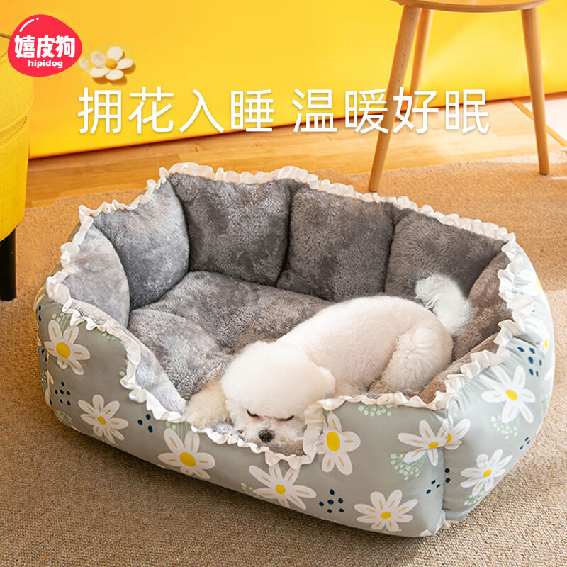 嬉皮狗(hipidog)狗窝四季通用小型犬狗狗床夏天凉窝猫窝夏季非可拆洗泰迪宠物用品 清雅雏菊加绒(搭配毛毯,防寒保 小号-10.斤内宠物通用【速发】