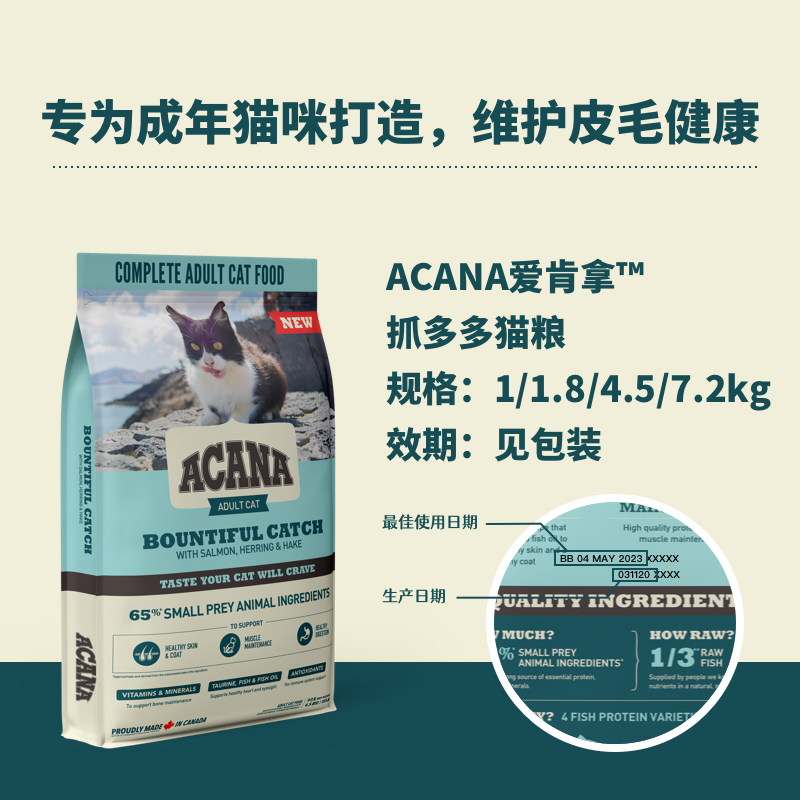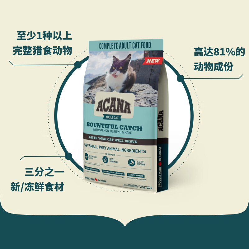 ACANA爱肯拿猫粮 加拿大进口成猫 燕麦鸡肉鱼肉味美短蓝猫成猫粮 成猫鱼肉味5.4kg(保质期2023-03-31)