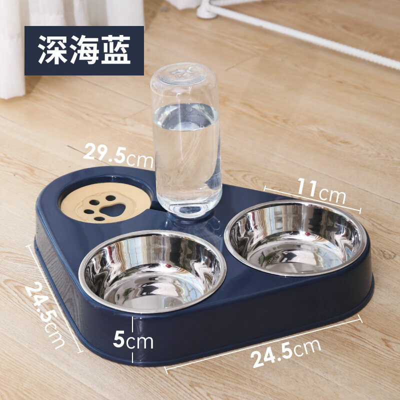 狗狗碗猫咪自动饮水猫碗猫粮食盆食碗不锈钢双碗狗盆饭盆宠物用品 深海蓝-小号 自动续水三碗