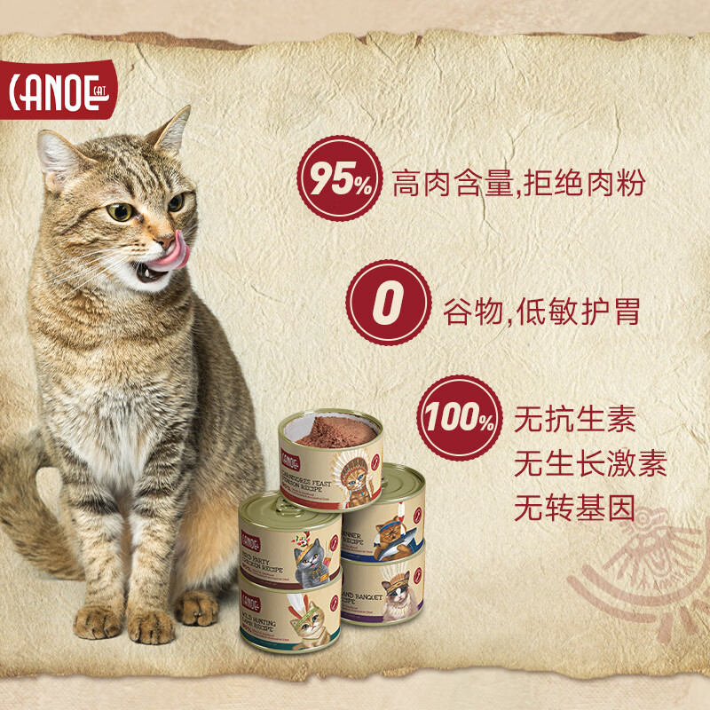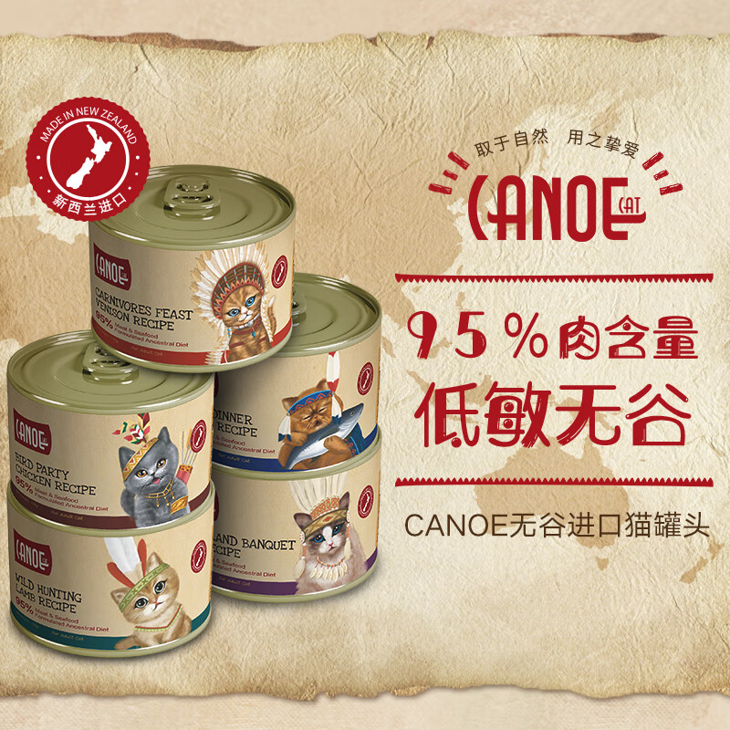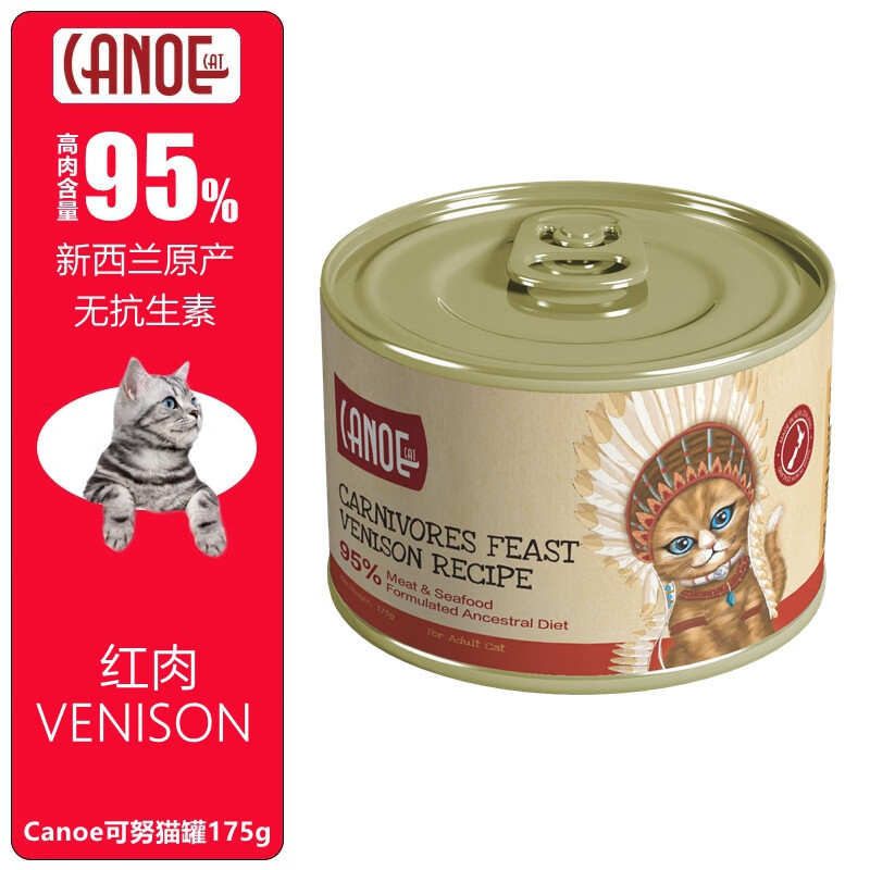可努猫Canoe cat主食罐新西兰进口无谷高肉含量猫咪增肥发腮宠物零食湿粮成猫幼猫通用全价猫罐头 可努猫Canoe Cat 红肉猫罐175g*1