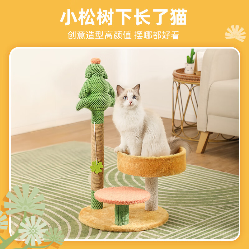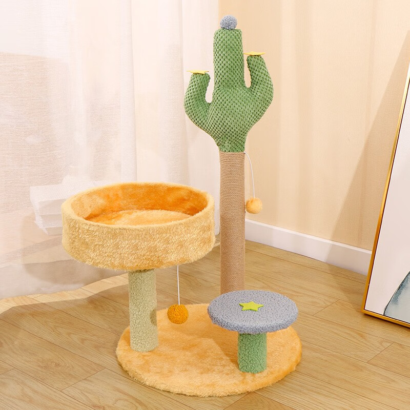 仙人掌猫爬架小型不占地猫架子猫窝猫树一体猫抓柱幼猫咪玩具用品 主图款带逗猫球【仙人掌双平
