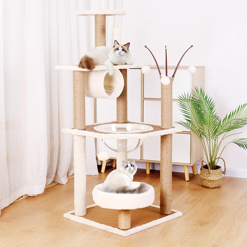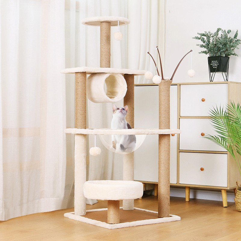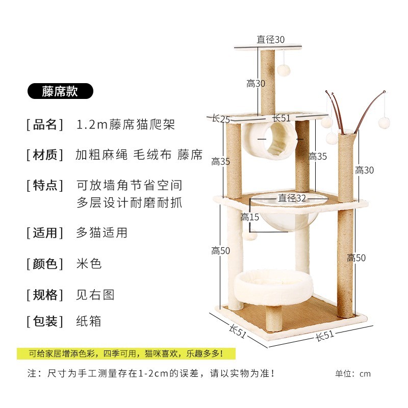 【升级加固加高】宠多乐 猫爬架大型豪华多层猫架子猫窝剑麻猫抓板耐磨猫抓柱带跳台猫树猫玩具宠物猫咪用品 1.2米藤席太空舱猫爬架