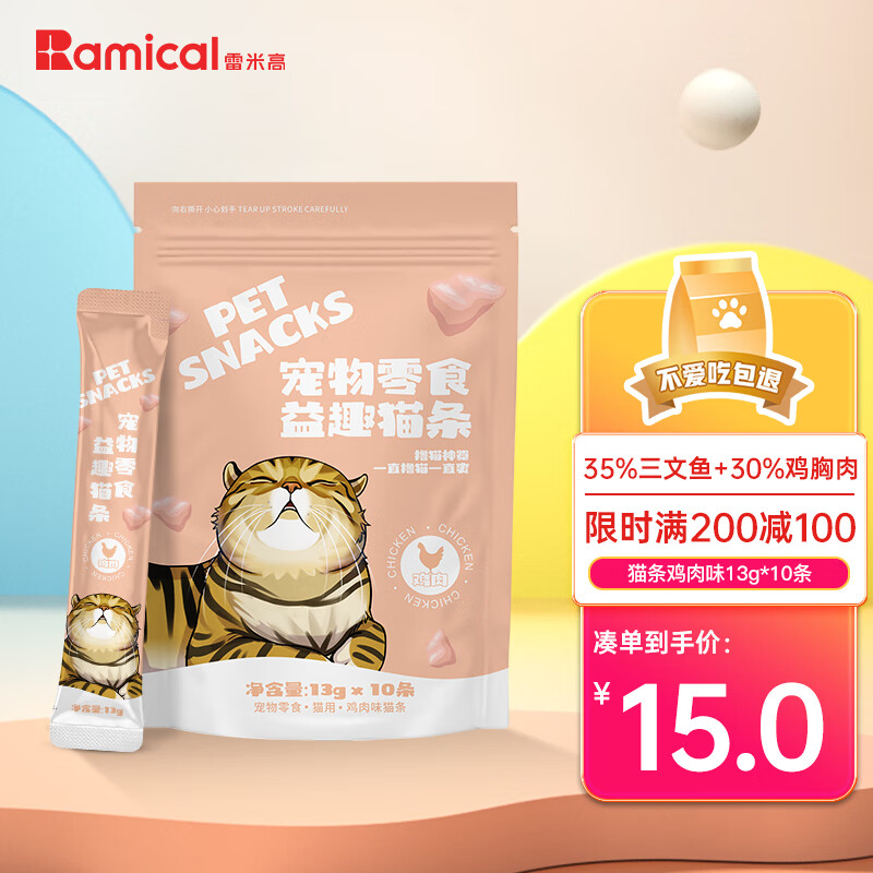 雷米高(RAMICAL)猫条猫零食成幼猫通用猫咪营养肉条鸡肉味13g*10条