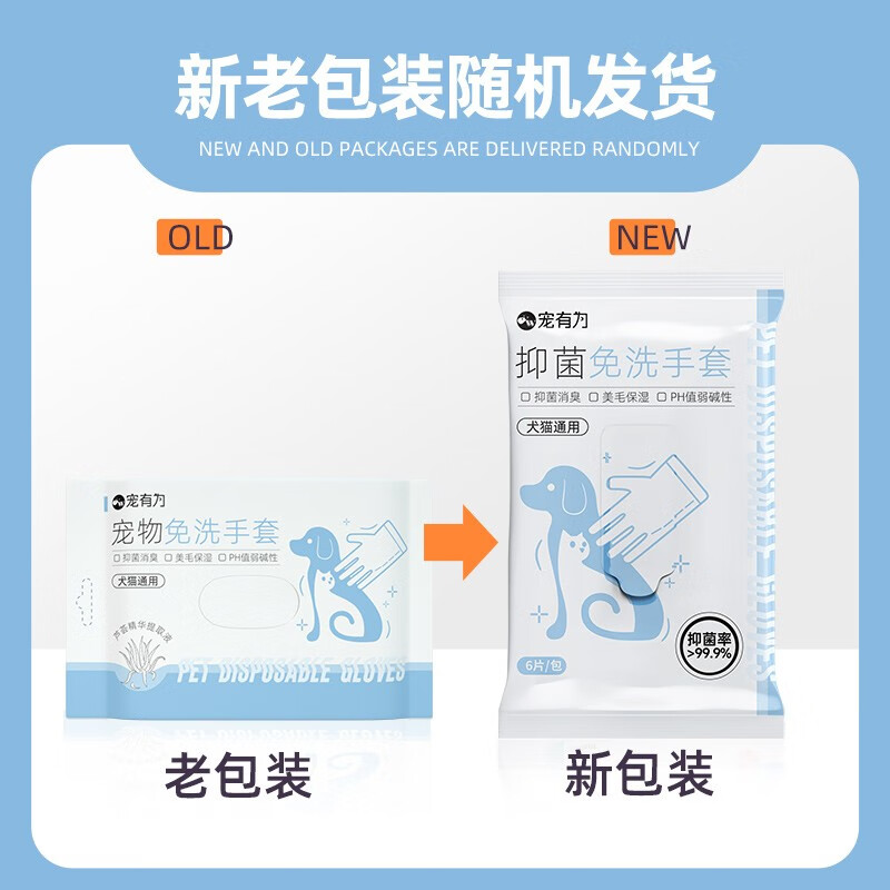 宠有为宠物浴香波免洗泡沫沐浴露狗狗滋养犬猫通用金毛白毛比熊清洁泡沫 免洗手套6片装