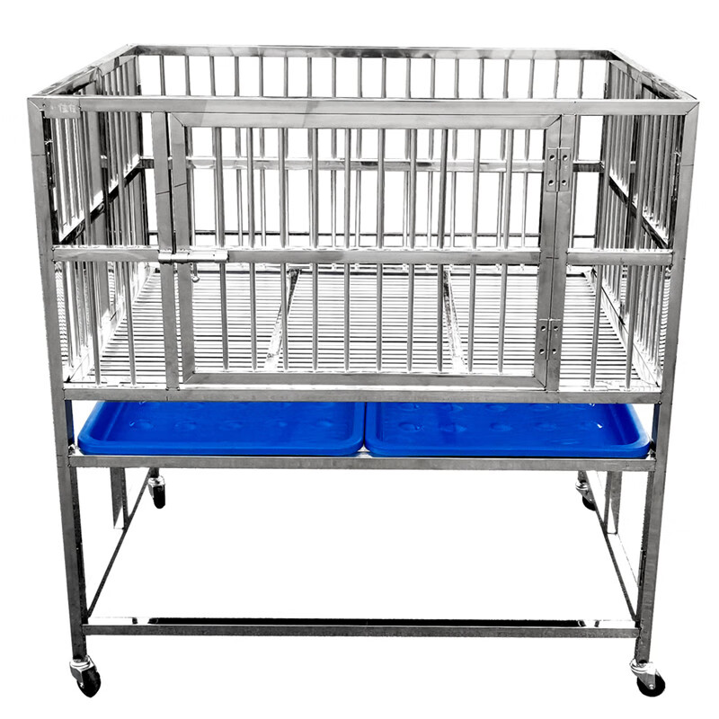 HKPZ不锈钢展示笼跑笼跑床笼子小型犬中型犬卖狗笼子可调节高度 特小托盘款:长65宽45高60 折叠免安装 排焊钢条底 静音脚轮