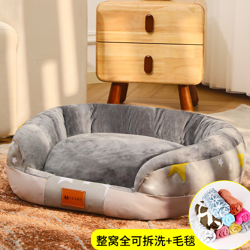 狗窝小型犬四季通用可拆洗狗狗床泰迪窝冬季保暖网红猫窝宠物用品 灰色星星【加毛毯】 小号-5斤内宠物(幼犬过渡使用_尺寸偏小)