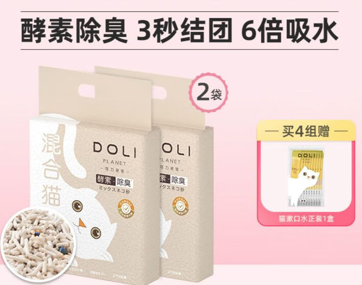 哆力星球猫砂酵素猫砂豆腐砂混合膨润土猫砂无尘2kg*2袋 酵素混合猫砂 2kg*2袋
