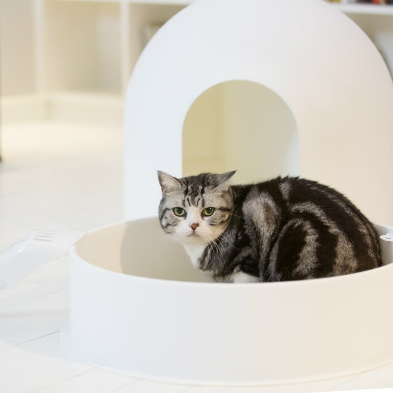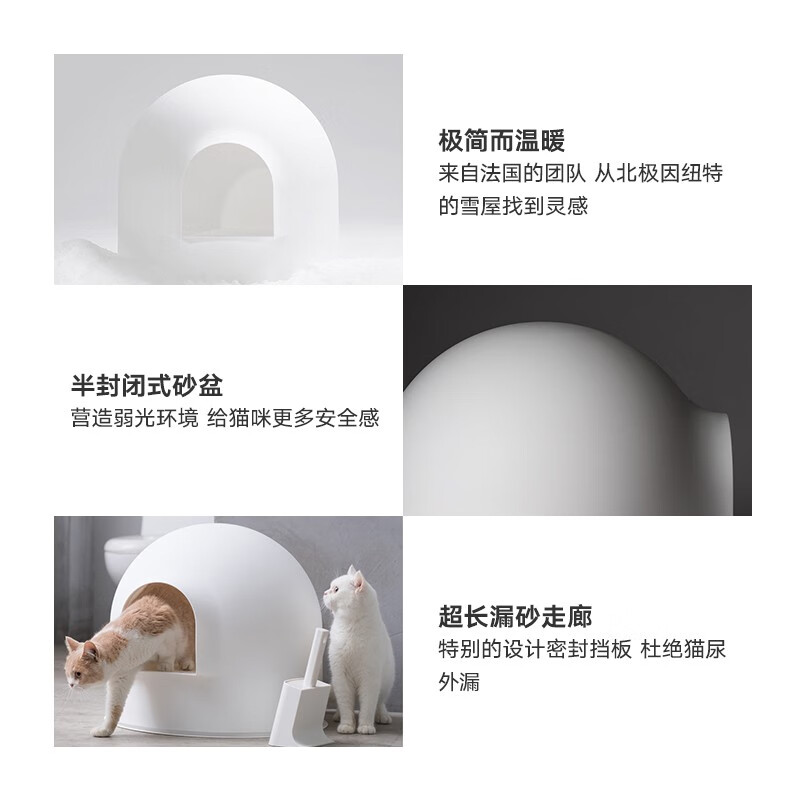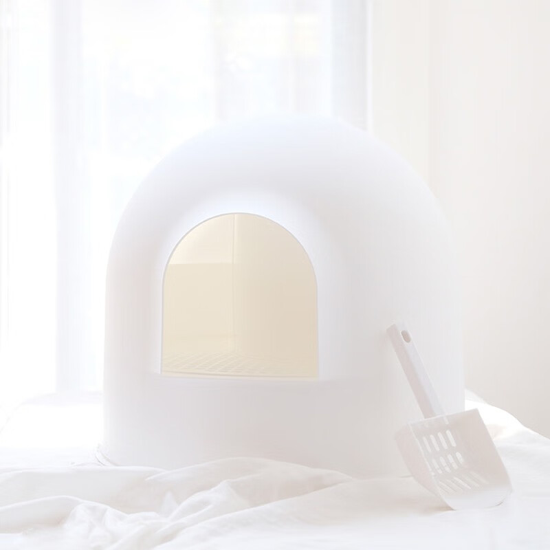 pidan皮蛋雪屋猫窝保暖猫砂盆防外溅猫厕所防臭成幼猫拉屎盆半封闭式 白色(实测尺寸56*55*49左右)