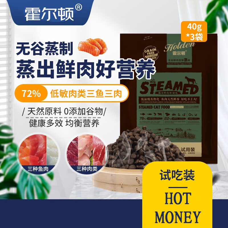 霍尔顿新品 无谷鲜肉发酵蒸粮 全猫种全猫期通用猫粮 试吃40g3包(内装20kg粮颗粒)
