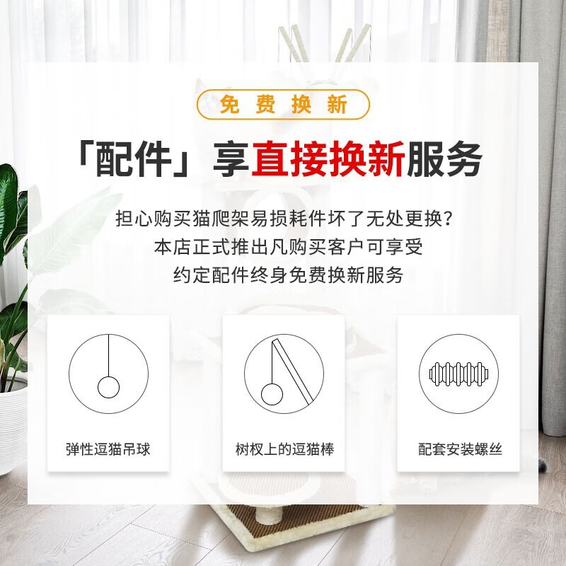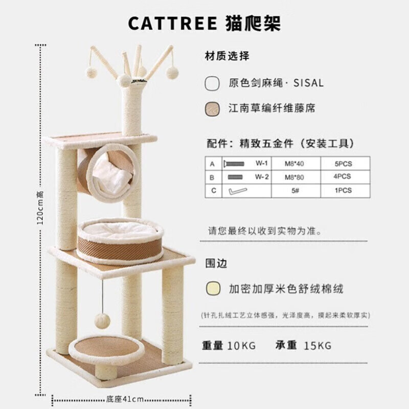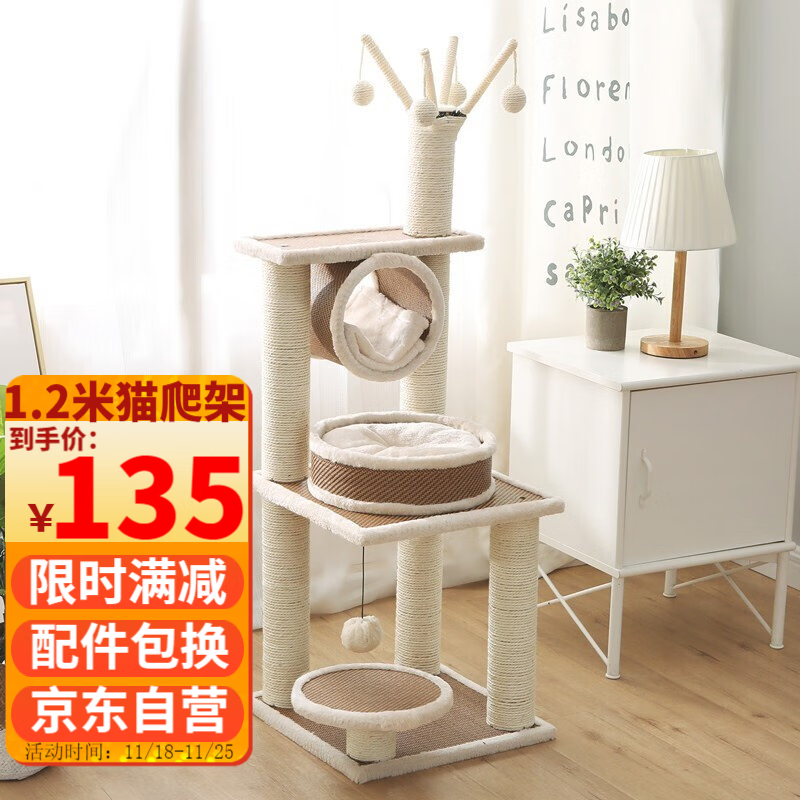 宠爱力 【1.99米加粗加固加高款】猫爬架带窝猫架子夏季多层大型豪华宠物猫玩具猫爬树猫抓板猫跳台猫窝 【1.2米】三层款