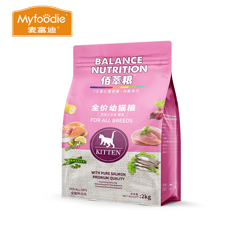 麦富迪佰萃猫粮 蓝猫美短英短布偶通用型天然粮 (三文鱼鳀鱼)幼猫粮2KG
