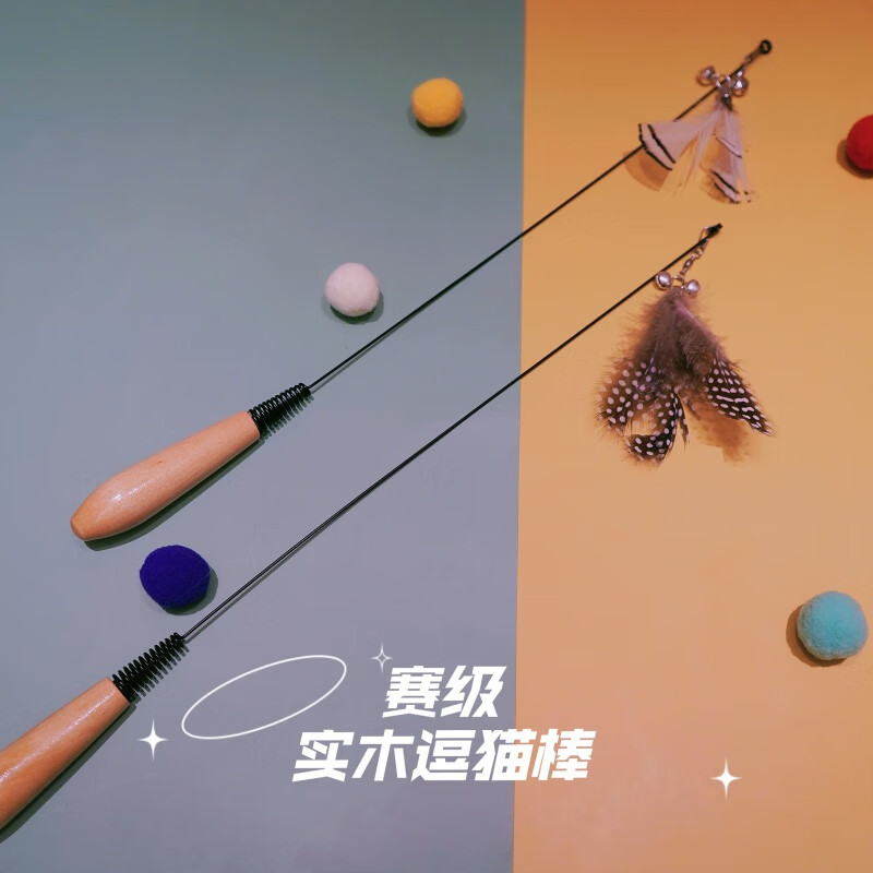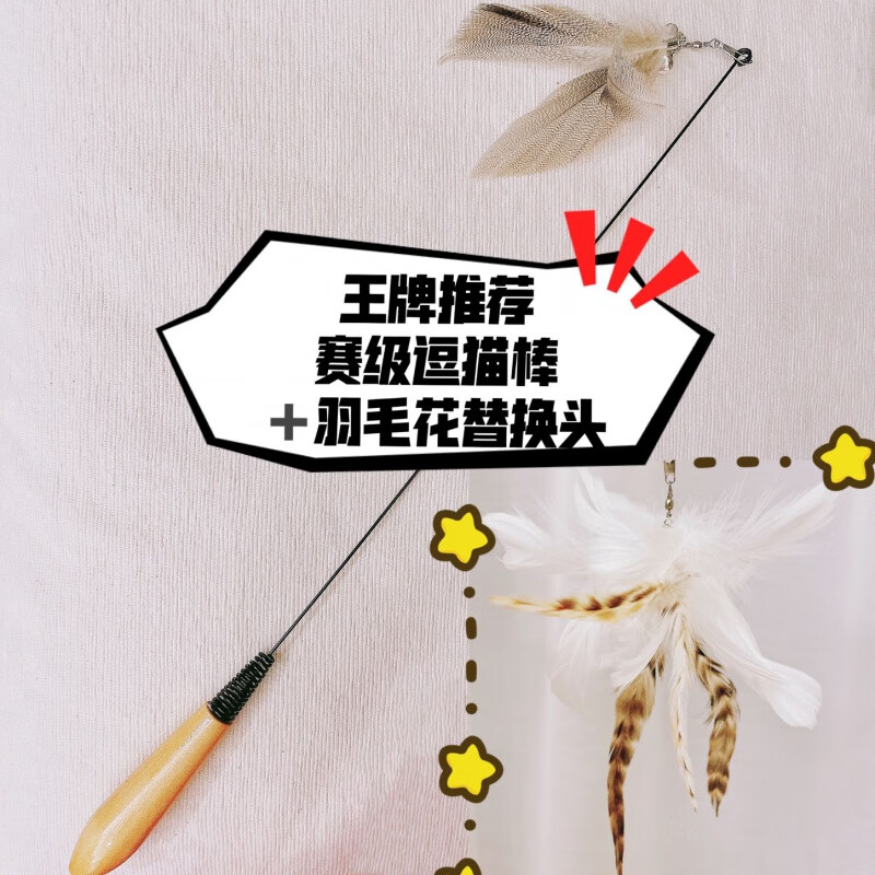 得乐CFA逗猫棒赛级猫咪自嗨羽毛带铃铛玩具可替换头实木柄 【】CFA赛级逗猫棒 羽毛花