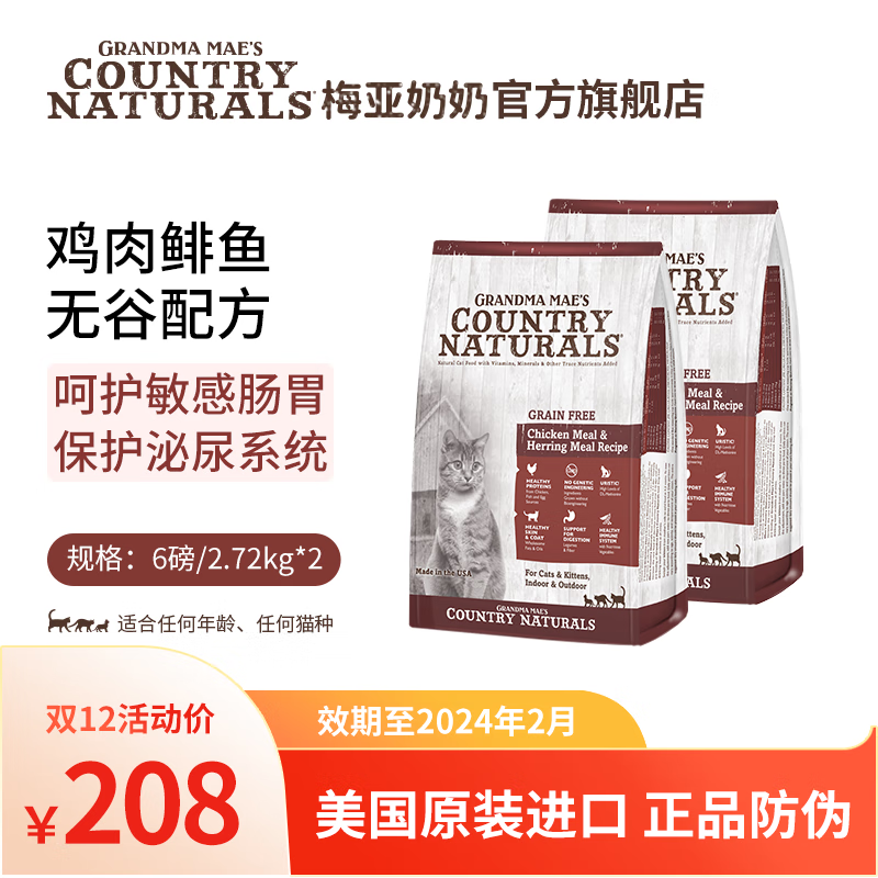 GRANDMA MAE'S COUNTRY NATURALS梅亚奶奶猫粮成猫幼猫美国进口无谷低敏鸡肉鲱鱼全阶段猫粮 6磅无谷鸡肉鲱鱼*2/5.44kg