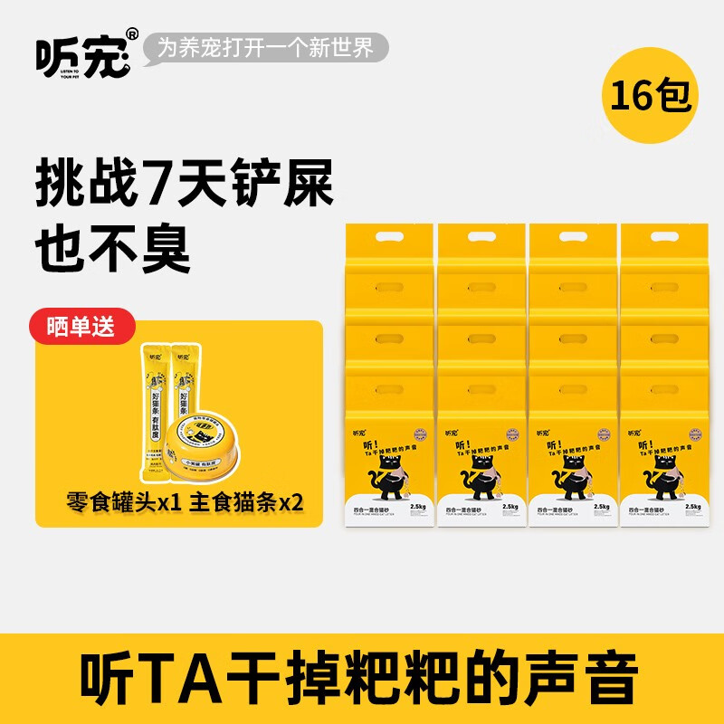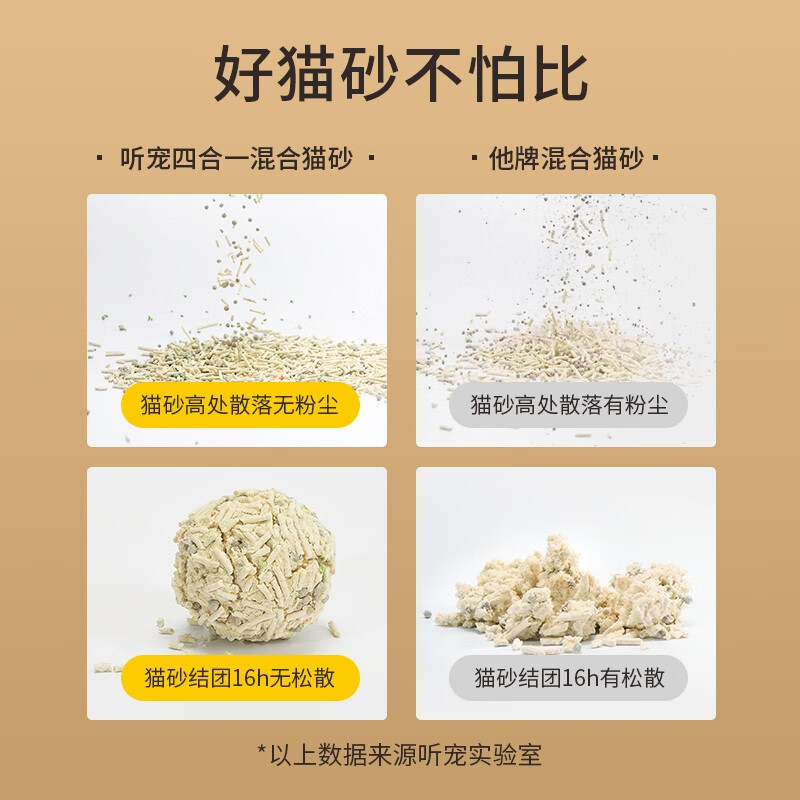 听宠4合1混合猫砂豆腐膨润土无尘除臭高效结团猫沙不粘底可冲厕所猫砂 80斤共16包