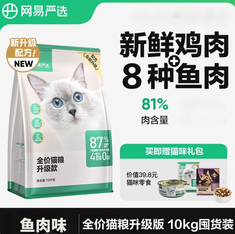 网易严选猫粮 成猫增肥10kg20斤营养全期全价无谷猫粮 幼猫猫粮 【鱼肉味】全价猫粮 3.0 升级 10kg