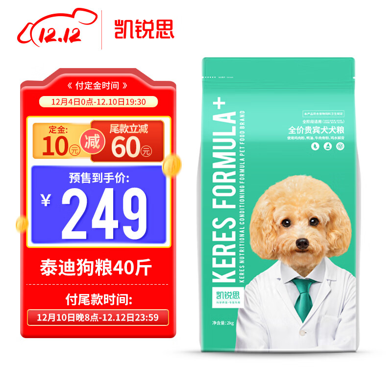 凯锐思贵宾泰迪狗粮幼犬成犬小型犬通用型天然奶糕粮 泰迪2kg*10袋(实发40斤)