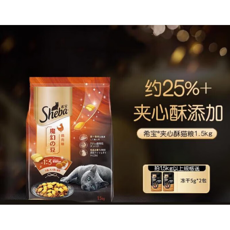 希宝sheba希宝全价夹心酥猫主粮1.5kg全猫期通用成猫幼猫粮 臻选鸡肉味 1.5kg (1袋)