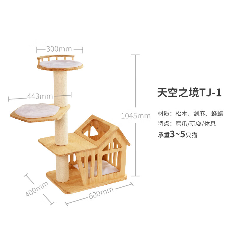 猫爬架猫窝猫树一体实木太空舱通天柱猫架子剑麻玩具猫咪用品大全 天空之城实木猫爬架基础款