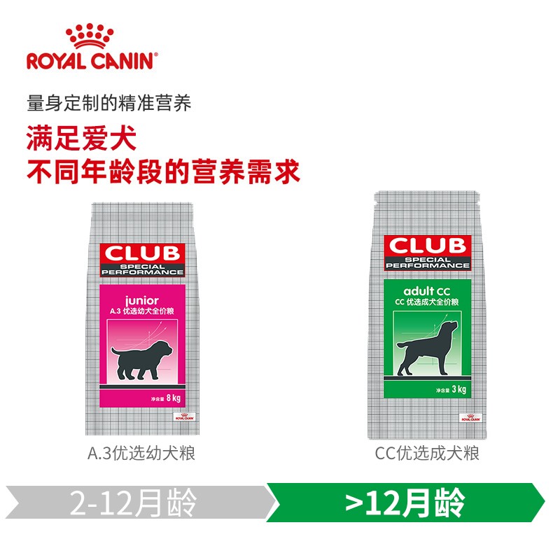 皇家(ROYAL CANIN)狗粮 优选全价CC狗粮通用型犬粮 均衡营养 提高身体抵抗力 CC通用成犬-8kg 12月龄以上
