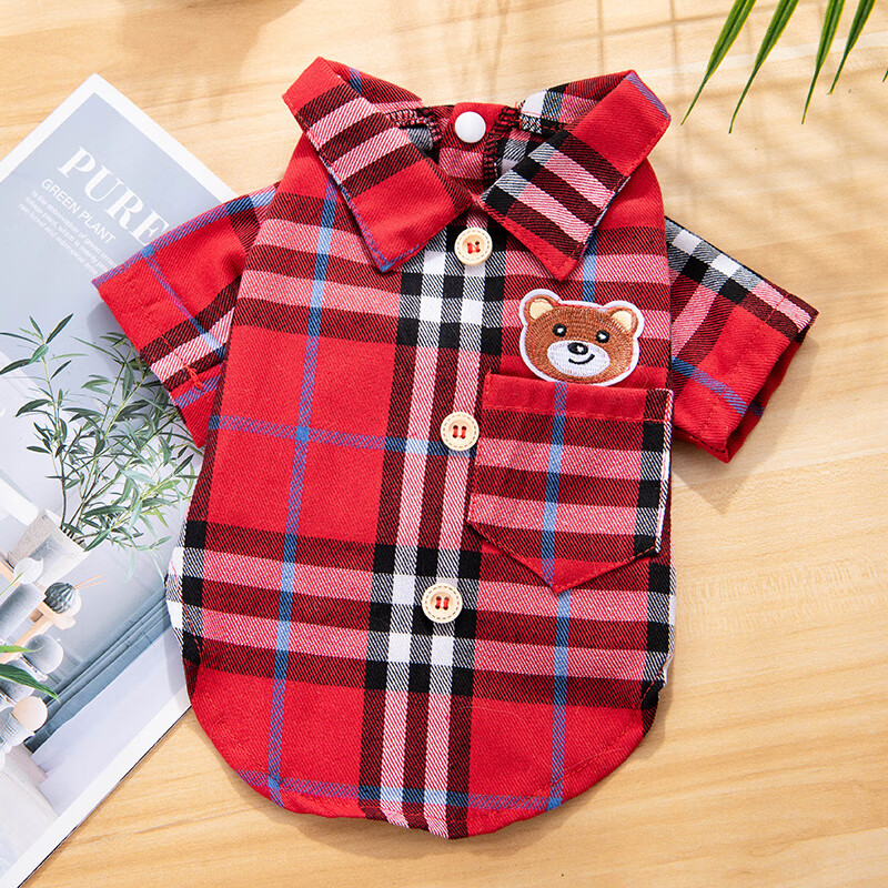 星孟汐宠物格子衬衫狗狗衣服比熊雪纳瑞猫咪小型犬小狗泰迪博美春夏薄款 白格子-经典 XS【建议1-3斤】