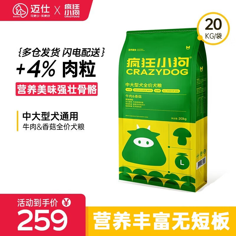 疯狂小狗狗粮牛肉双拼粮金毛萨摩耶拉布拉多阿拉斯加中大型成犬粮 【口碑款】香菇牛肉20kg【40斤】