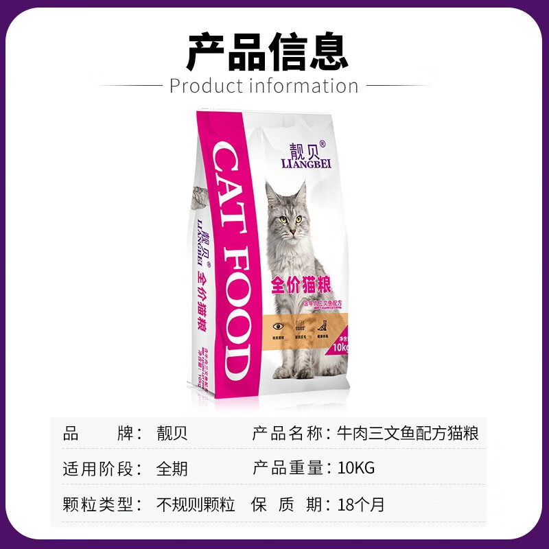靓贝猫粮 牛肉三文鱼成年幼猫通用粮 蓝猫英短明目亮毛10kg 20斤