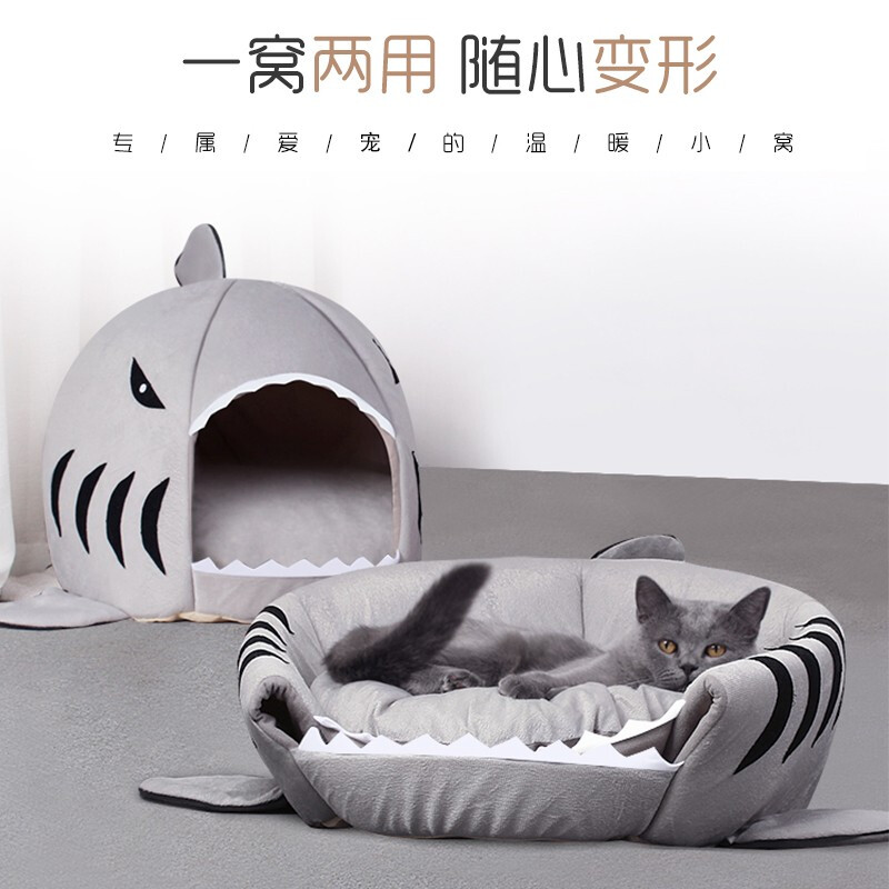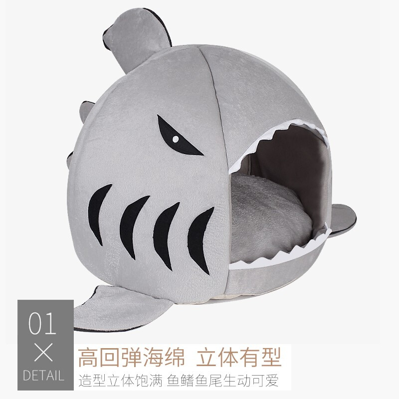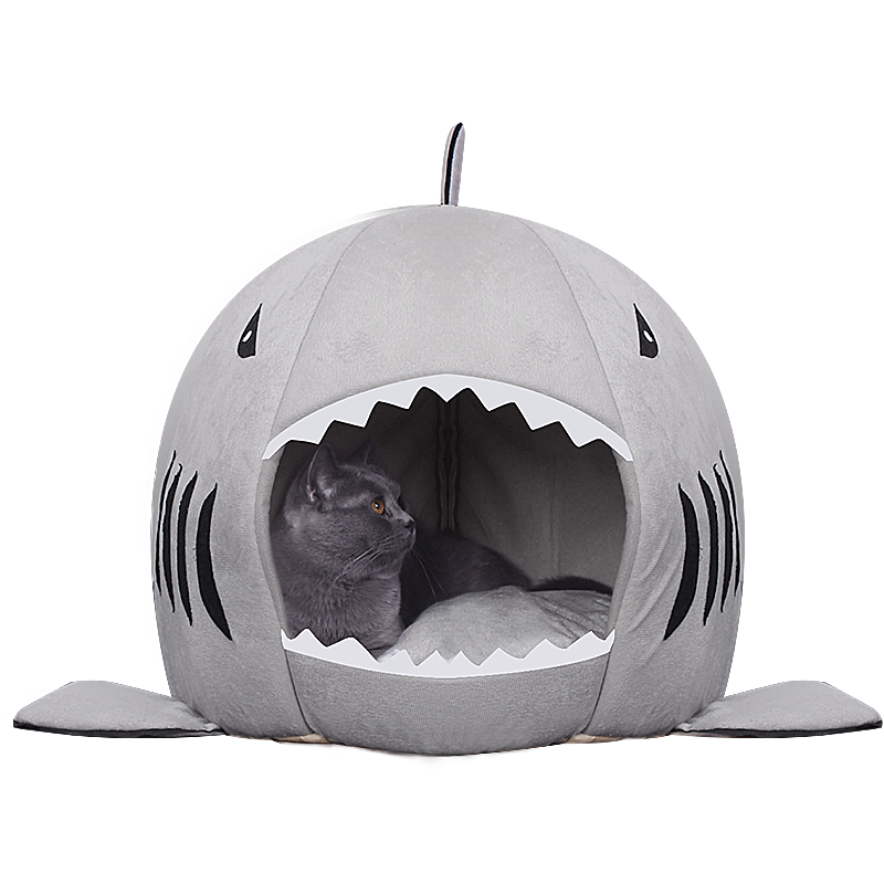 【精选推荐】 猫窝四季通用封闭式猫睡袋猫垫子可拆洗俩用宠物猫咪房子泰迪狗窝小型犬狗垫子 鲨鱼窝48cm M码建议15斤内