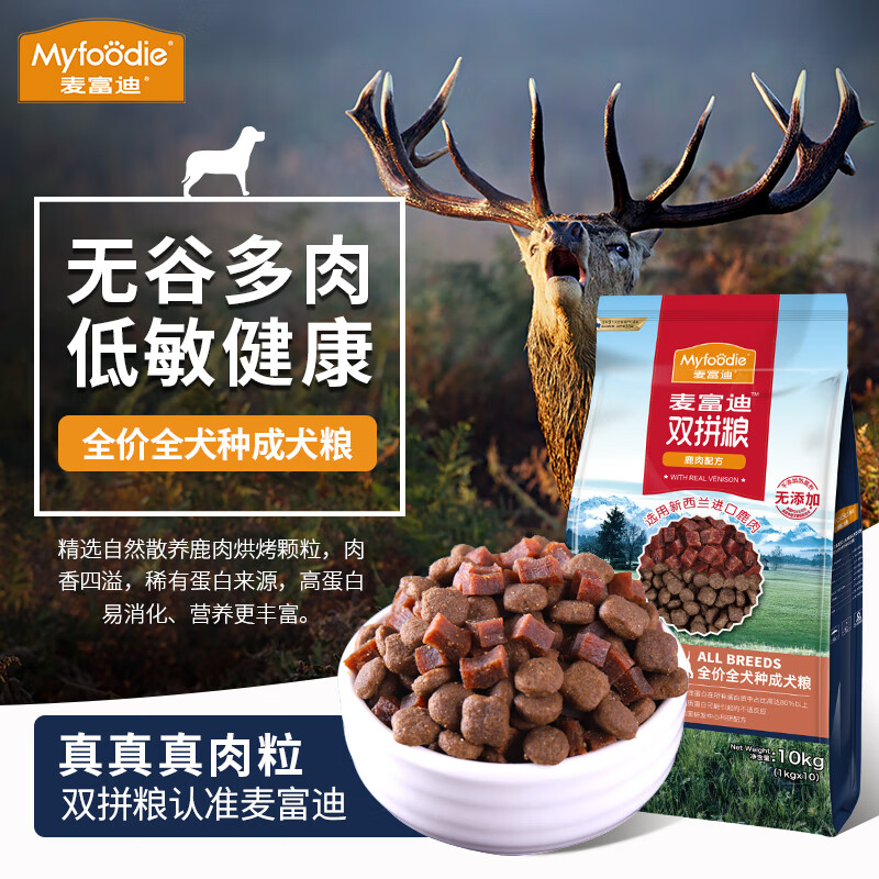 麦富迪狗粮 无谷鹿肉牛肉火鸡双拼粮10kg 泰迪哈士奇金毛 通用型成犬粮 通用型无谷鹿肉双拼成犬粮10kg