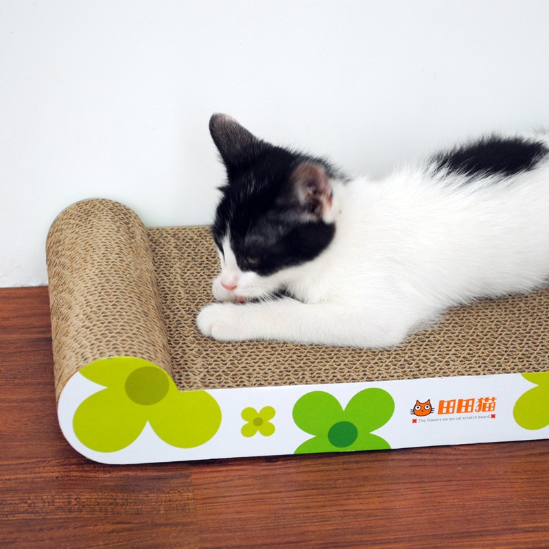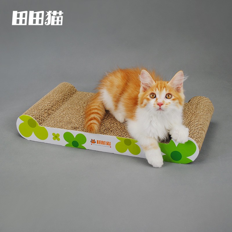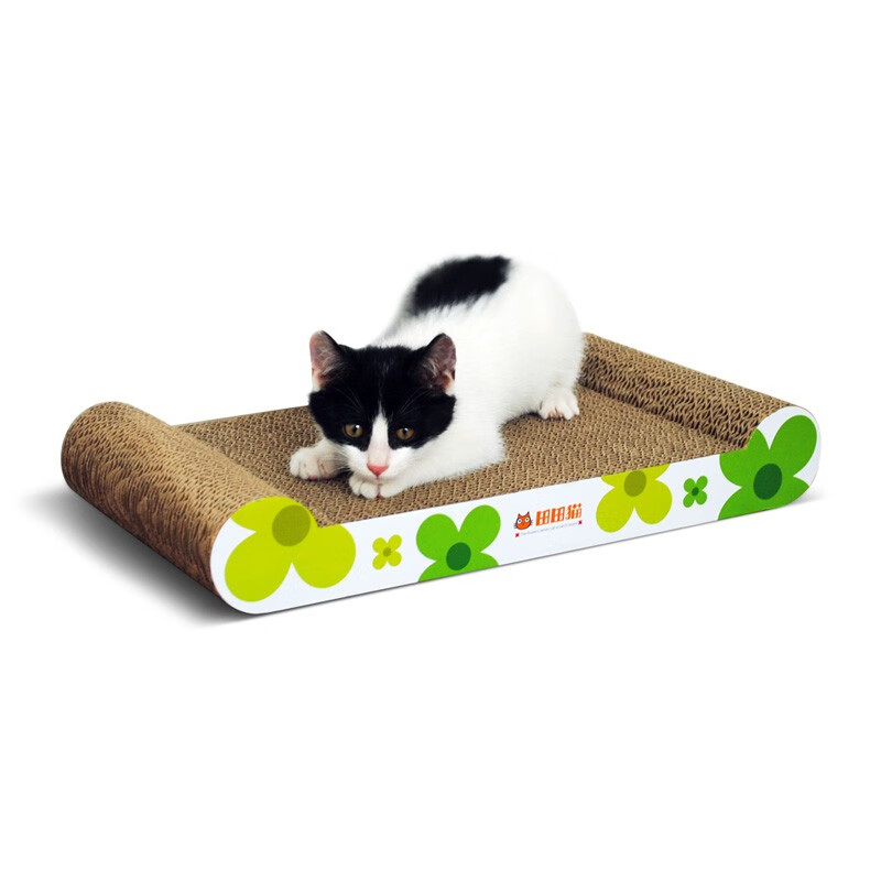 田田猫平板瓦楞纸耐抓耐磨幼猫玩具猫抓板猫磨爪猫沙发猫用品 骨头花朵绿