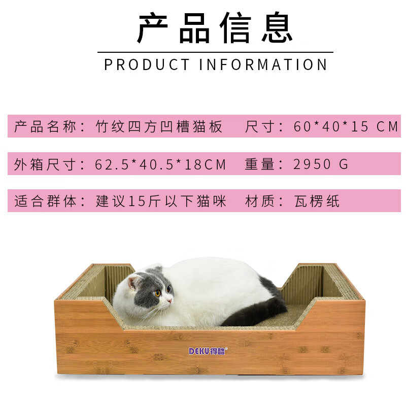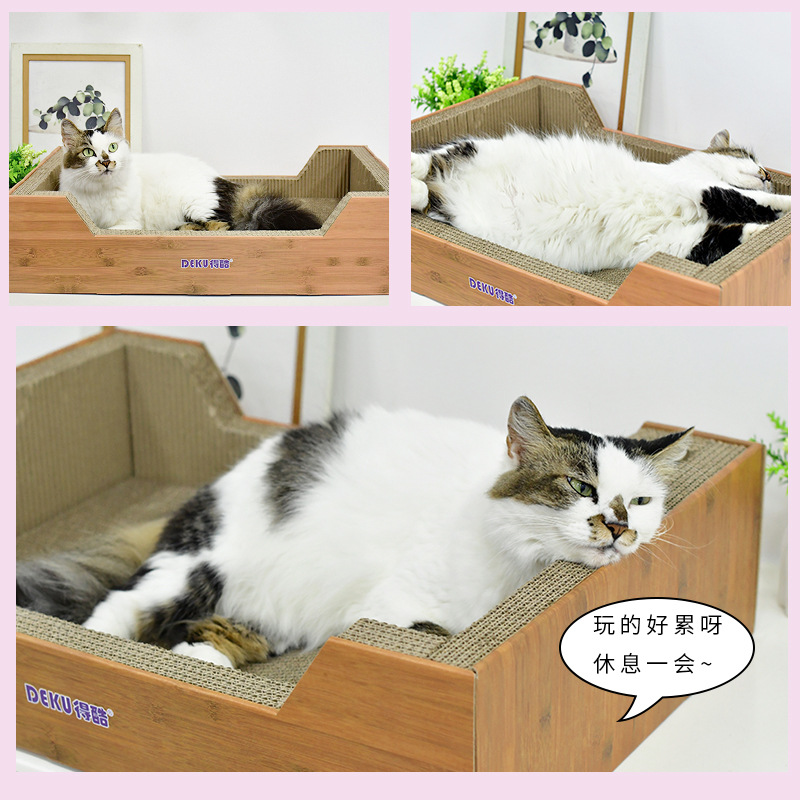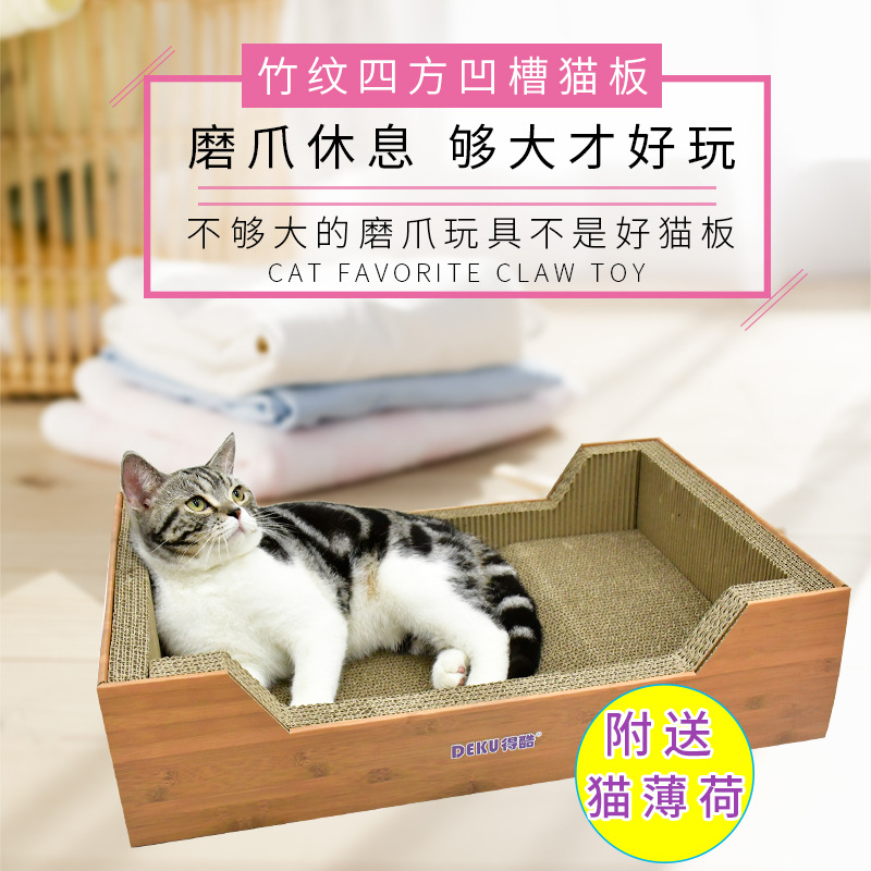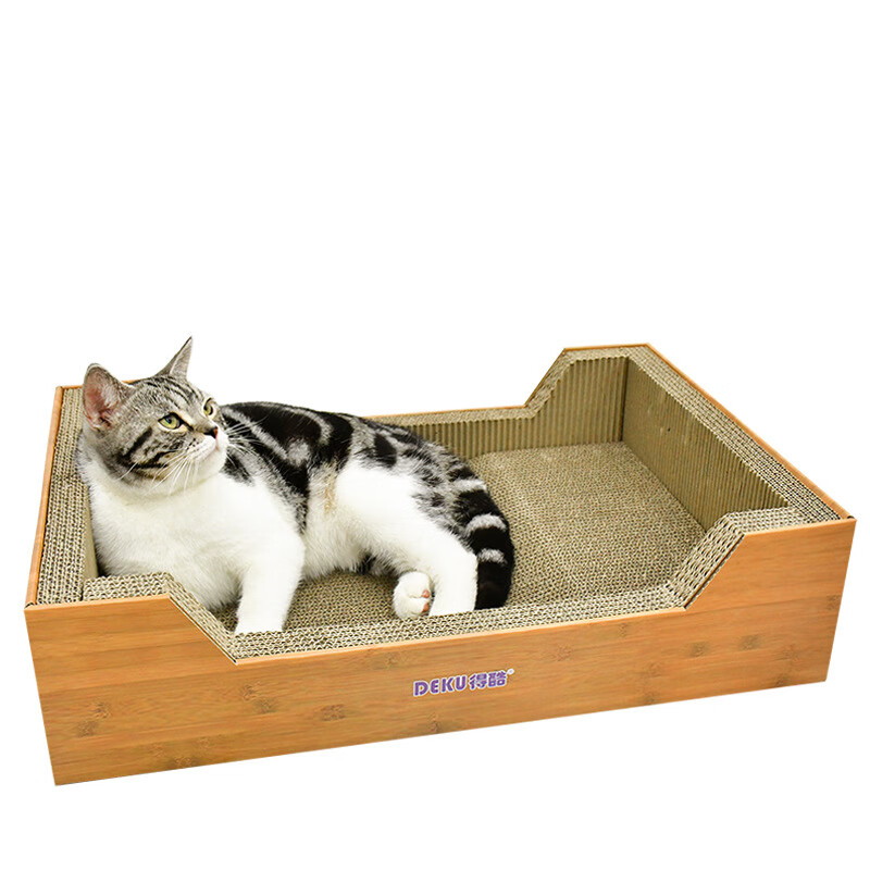 得酷 猫抓板大号瓦楞纸猫窝猫屋猫咪磨爪器猫盆猫抓床玩具猫用品 加大号竹纹猫窝 适合15斤猫 60*40*15CM