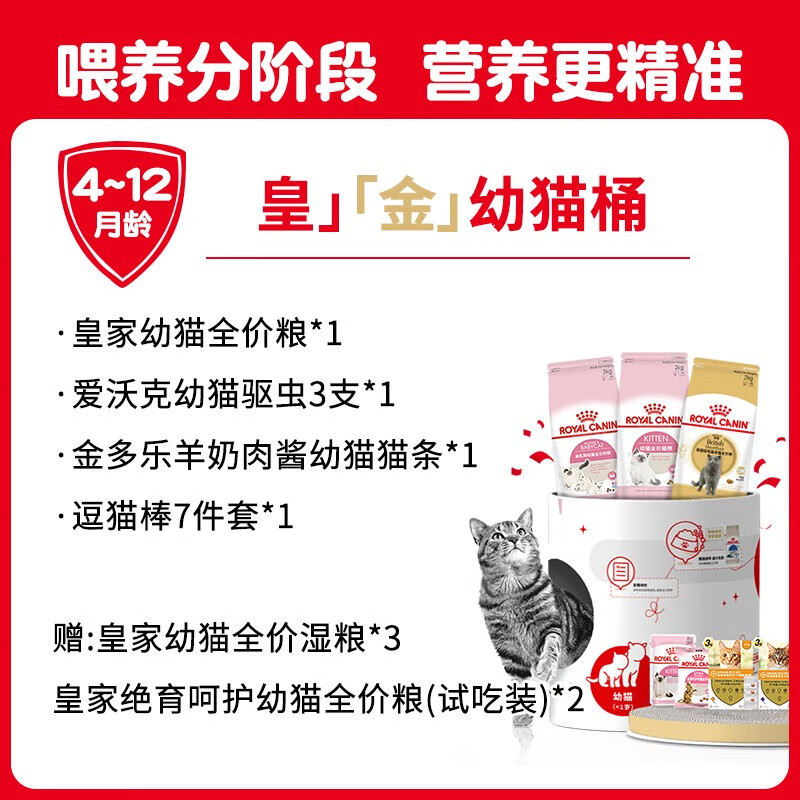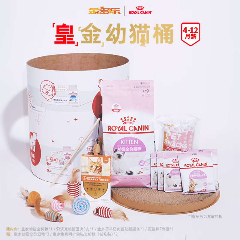 皇家(royal canin) 猫粮 幼猫哺乳期孕猫猫粮K36 4-12月猫龄适用英短美短加菲猫猫粮 【4-12月用】金多乐x皇家【皇金幼猫桶】联名礼盒