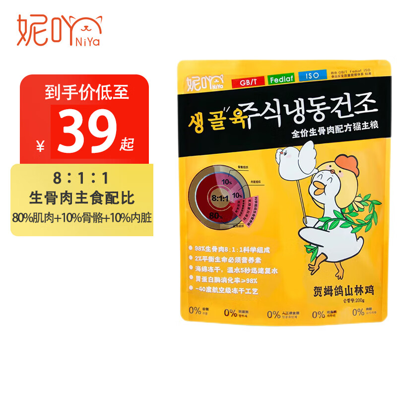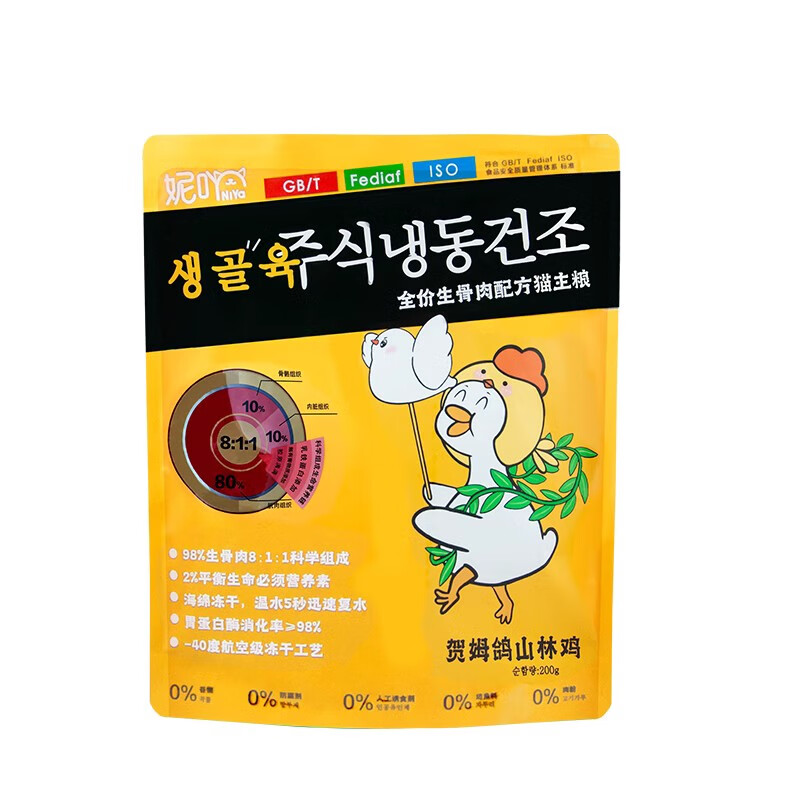 妮吖冻干全价生骨肉冻干猫主粮主食冻干猫零食猫粮营养增肥主食冻干 【袋装】和平鸽山林鸡 200g
