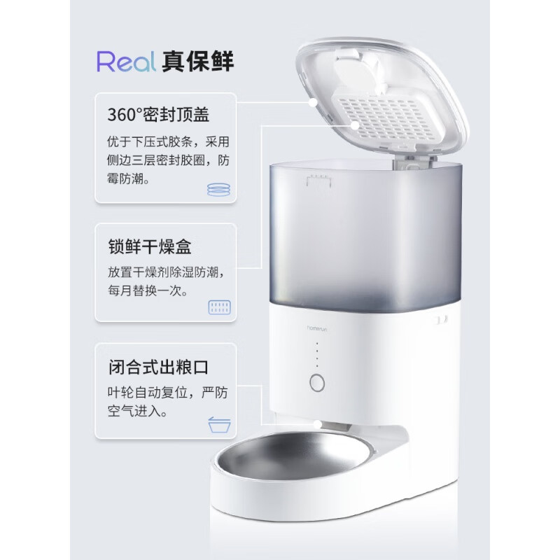 霍曼(Homerun)Real自动喂食器猫咪定时定量智能宠物猫粮狗粮投喂机远程控制 【陶瓷碗喂食器 三代饮水机】
