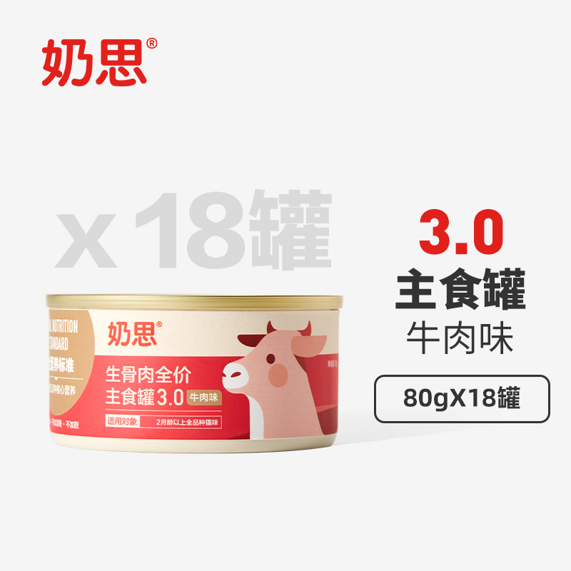 奶思主食罐3.0牛肉18罐成幼猫鲜肉天然无谷营养生骨肉