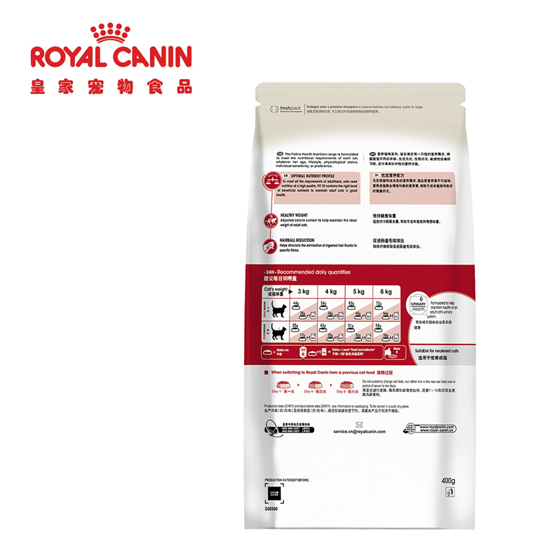 华元宠具皇家营养成猫粮成猫去毛球减肥猫粮折耳英短天然猫粮食猫主粮 400g*4包