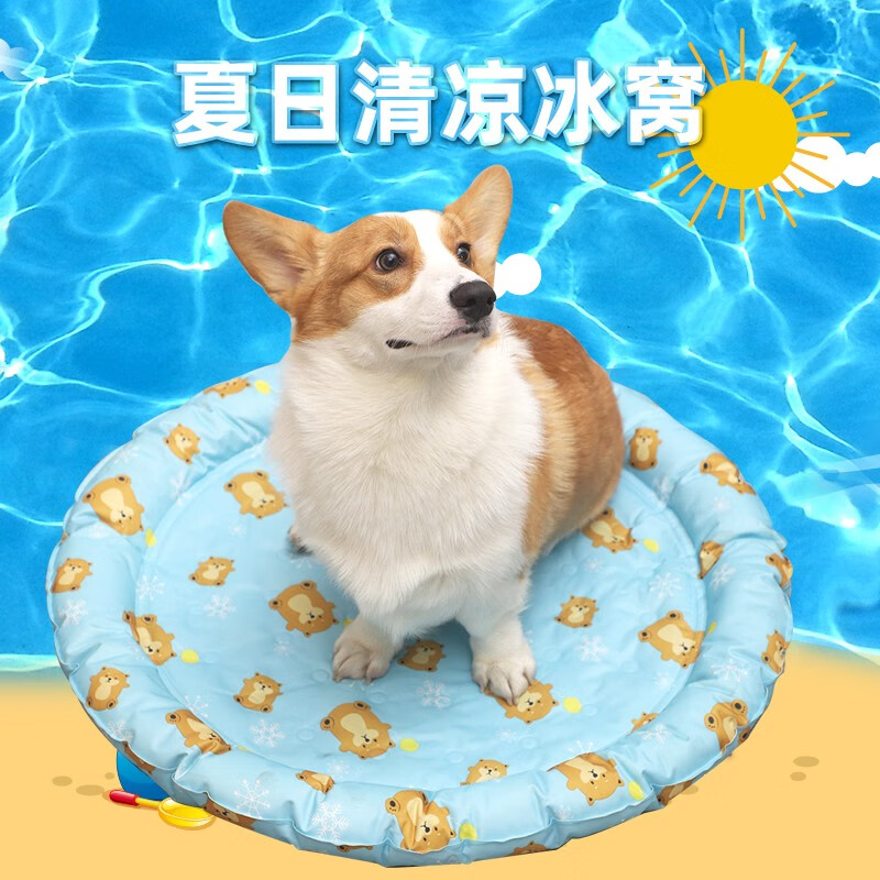 关谷庄宠物冰窝狗狗夏天睡垫凉席垫子冰窝猫咪夏季睡觉降温神器凉垫用品 蓝熊圆窝 50*50[推荐 25 斤以内]