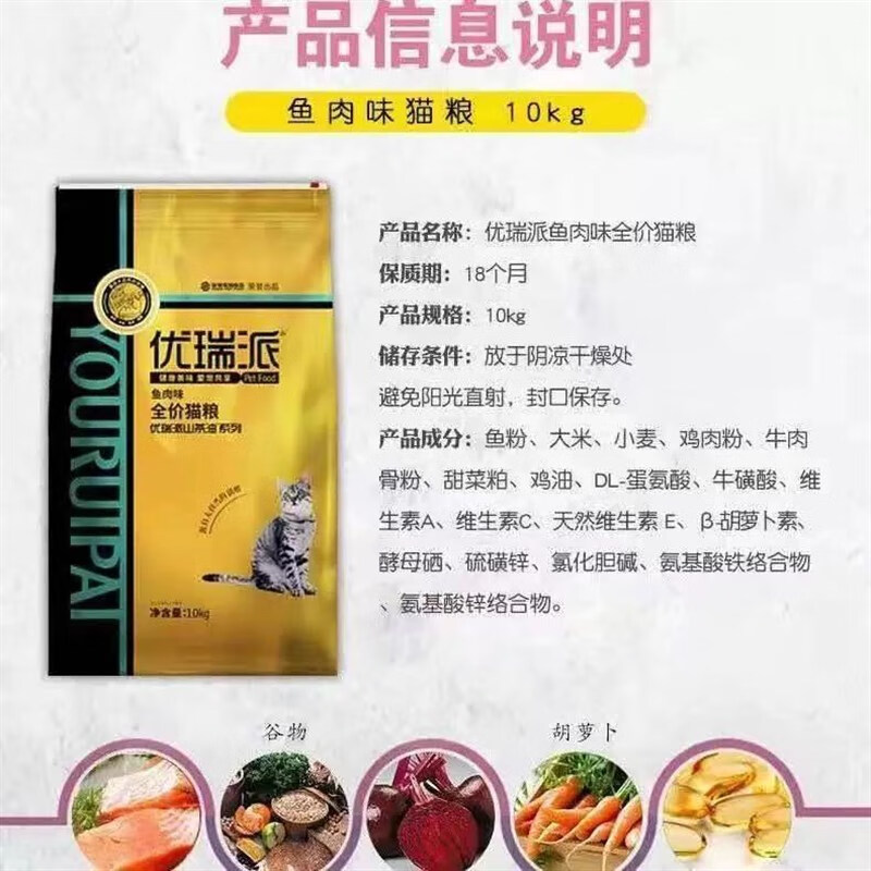 爱肯拿(ACANA)优瑞派猫粮10kg美短美短成猫幼猫三文鱼味牛肉味流浪猫猫粮20斤装 鱼肉味