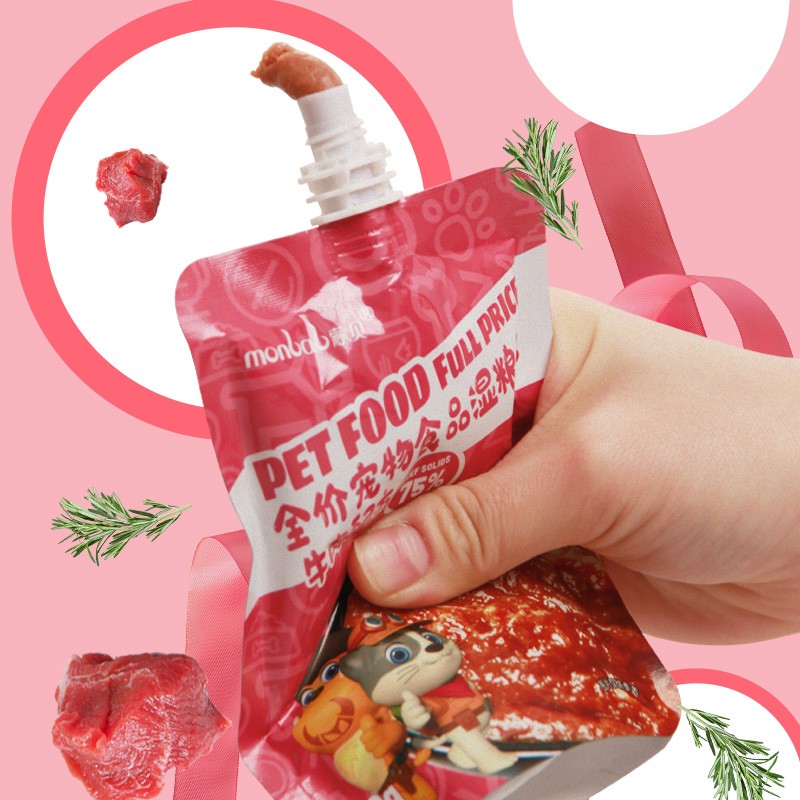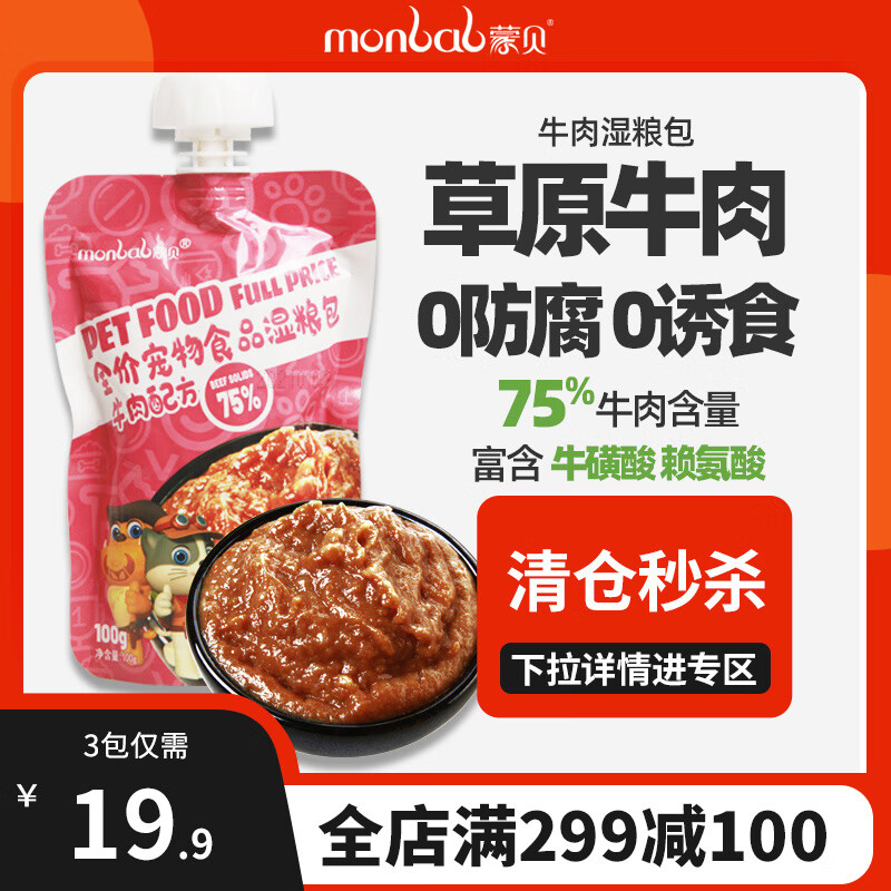蒙贝 牛肉酱湿粮包100g 宠物零食拌饭罐头猫条幼猫幼犬成犬狗零食 100g*3袋 牛肉原味