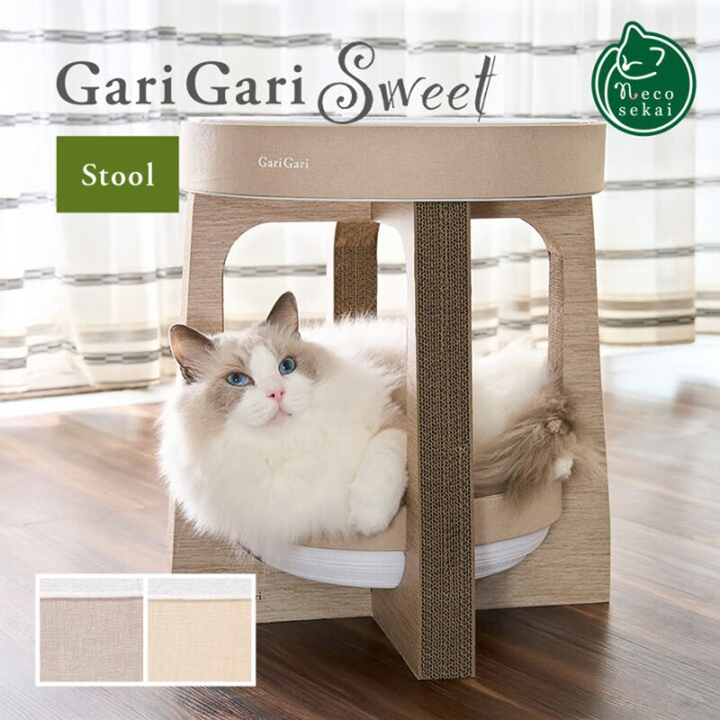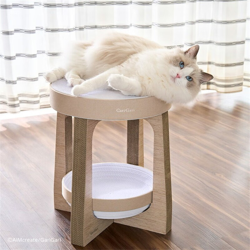 GARIGARI小凳子猫抓板磨爪器耐磨耐抓猫窝猫爪板一体不易掉屑瓦楞纸猫玩具 米色