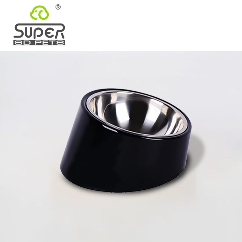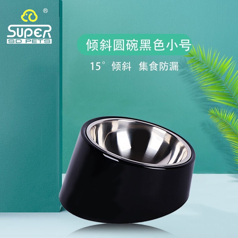 休普-倾斜圆碗黑色小号 super休普防滑倾斜狗碗宠物碗不锈钢猫咪狗狗食盆护颈斜口饭碗宠物碗猫狗用品