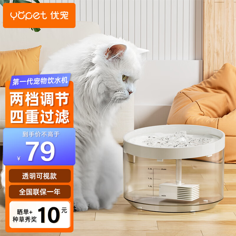优宠(Yopet)第三代宠物智能饮水机水泵滤芯过滤流动活水猫咪自动循环喂水器 第一代透明基础款