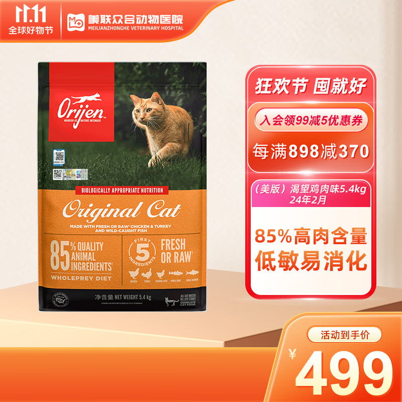 原始猎食渴望(ORIJEN)orljen爱猫鸡肉六种鱼肉猫粮原装进口幼成猫全价猫主粮鸡肉/鱼肉 美版 鸡肉味 5.4kg