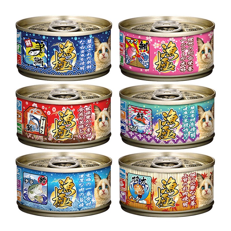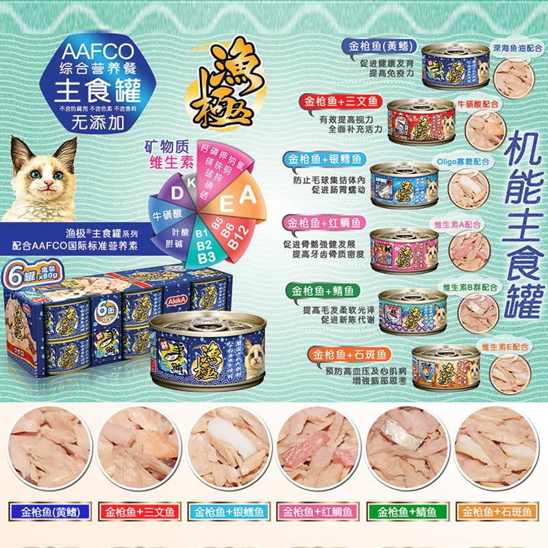原装进口日本渔极猫罐头成幼猫湿粮营养增肥补水零食AY系列80gX24罐 AY系列22 金枪鱼 三文鱼 80g*24罐