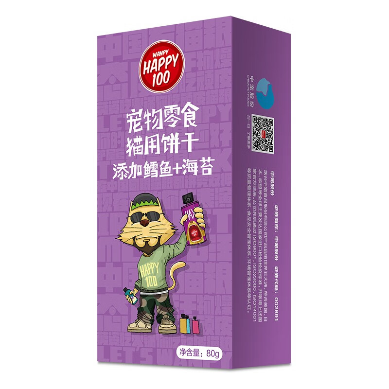 顽皮(Wanpy)猫饼干猫零食小鱼干饼干猫薄荷成猫幼猫零食多重口味80g/盒 鳕鱼 海苔80g/盒