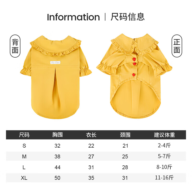 ISPET2024新款狗狗衣服秋款宠物泰迪比熊雪纳瑞约克夏小型犬全棉衬衫 黄色 S(推荐2-4斤)