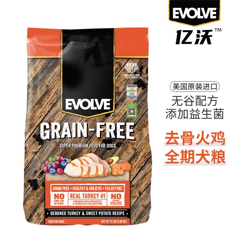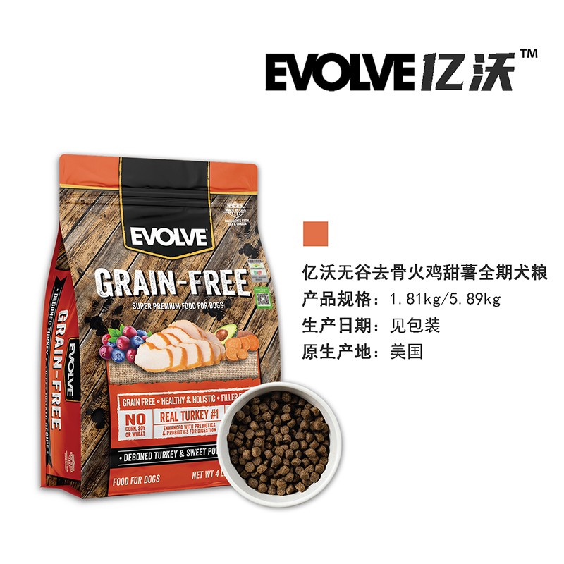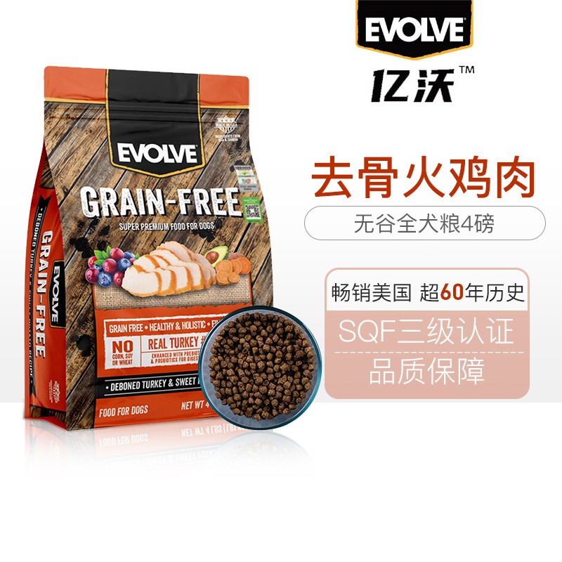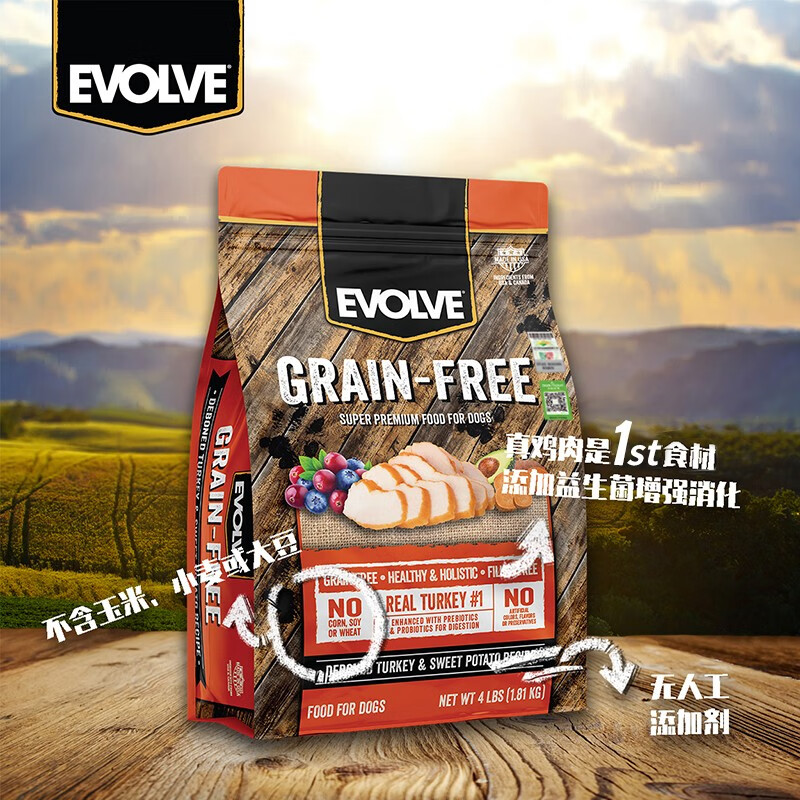 亿沃(EVOLVE)亿沃天然无谷全犬粮狗粮全阶段狗干粮鲜肉添加益生菌增强消化 无谷全期犬粮4磅/1.81kg