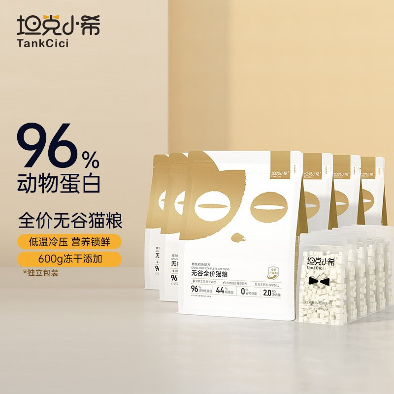 坦克小希(Tankcici)【包年6期】无谷猫粮幼猫成猫全价冻干双拼猫粮均衡营养6包共24斤 鳟鱼鳕鱼双拼冻干2.1kg*6 6个月以上 全猫期